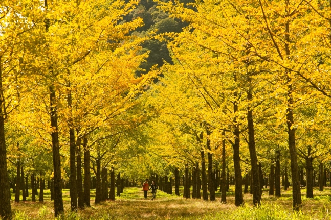 1년 중 단풍철에만 문을 여는 비밀의 가을 명소입니다. 강원도 홍천군 내면 광원리에 자리하여 약 1만 2000평 규모의 숲으로 은행나무만 2000그루가 넘게 있습니다. 주민이 1985년부터 가꾸어온 사유지이며, 가을 나들이객을 위하여 매년 10월 한 달간 숲을 열어 둔다고 합니다. 3~4m의 간격을 두고 집채만 한 은행나무가 심어져 있으며 그럼 같은 풍경 덕에 가을이면 전국에서 인파가 몰려듭니다. 입장료는 따로 없으며, 오전 9시~11시 경이 인생사진을 담아가기 가장 좋은 시간입니다. 여름열기가 늦게 빠져 15~20일은 돼야 단풍이 절정을 맞을 것 같다고 합니다.