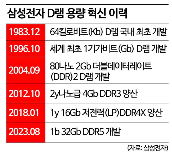 삼성전자가 12 나노급 32기가바이트 DDR5 D램을 개발완료하며 연내 양상을 시작합니다. 32Gb는 D램 단일 칩 기준으로 역대 최대 용량이며, 앞으로 삼성전자는 고용량 D램 제품군을 지속해 선보이며 D램시장을 견인하겠다고 발표했습니다.